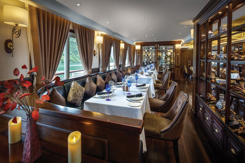 A sleek, modern vessel that fuses contemporary styling with Vietnamese design concepts, the Paradise Elegance is a meticulously designed steel boat that has reimagined luxury cruising on Halong Bay. Boasting a piano bar, day spa and wellness centre, butler service and the full range of dining options, the Elegance is a work of art, the experience exquisite, the journey flawless.