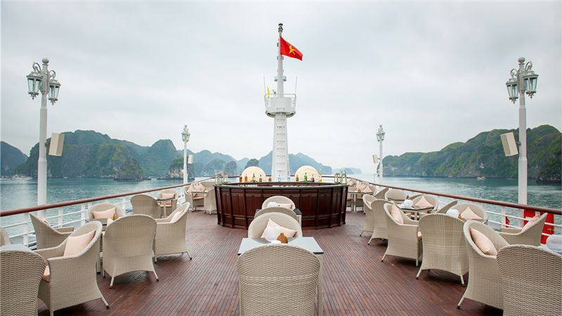 Fusing contemporary style with traditional Vietnamese concepts, mixing elemental materials such as metal and wood, which makes the Paradise Elegance a stunning work of art, berthed magnificently in the middle of the world wonder Ha Long Bay.