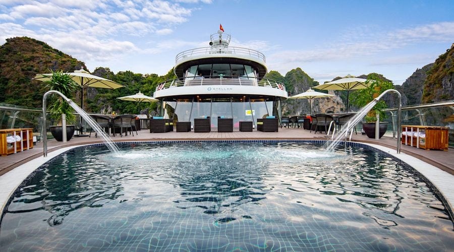 – Arriving Tuan Chau marina, transferred by speedboat to Stellar of the Seas. Welcome aboard the cruise. Refresh with our welcome drink. Meet the captain, crew in the cruise briefing, safety instruction.
