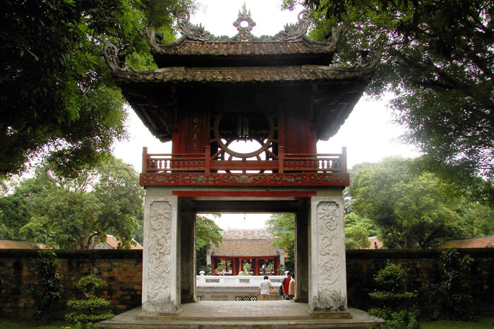 The layout of the temple is based upon the birthplace of Confucius with a magnificent main entrance and a path, once reserved solely for the king, running through the centre. The immaculate gardens are rich in ancient trees and are considered a serene place in which students can relax. There are stone statues and inscriptions dotted throughout the temple which has retained many of its original features as the most renowned landmark of academia in Vietnam.
